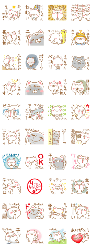 りっちゃん専用のスタンプ。りか,りさ,りさこ,りかこ,りつこ,りえ,りな,りの,りょう,璃子,理沙,里奈,莉乃,理穂,梨深,涼,里香,律子,理恵などりっちゃん専用のスタンプですしん より発売