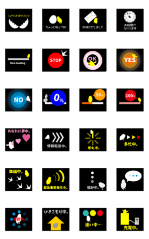 ゲームやパソコンなどであるデータの読み込み中のnow loadingとひよこのシンプルな動くラインスタンプです。主にすぐに返事ができずラインの相手を待たせる時に使えます。