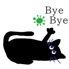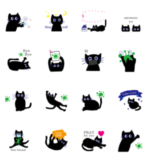 動く黒猫のスタンプです。コロナと果敢に戦っています。どうかみなさんお大事になさってください。くろねこ、猫パンチ、stayhome、 staysafe、ウイルス、コロナ撃退Weekender R より発売