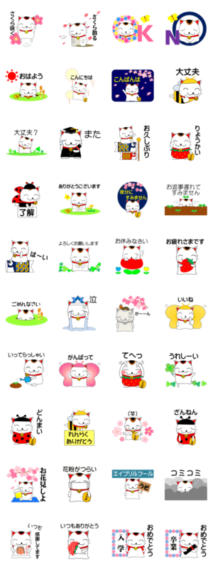 招き猫のねねこ 春編(桜、入学、母の日) スタンプ画像一覧