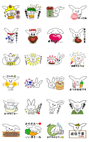 うさぴょんの節分・バレンタインと日常のあいさつで使えるスタンプですほんのり より発売