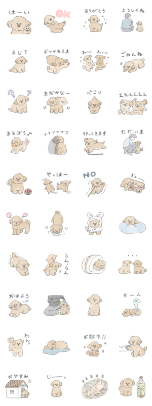 人気イラストレイター「じゅん」とYouTubeチャンネル「テディベアドッグのモコ」のコラボLINEスタンプです。テディベアドッグのモコ より発売