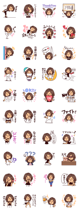 少しシュールで控えめ、子供心を忘れない大人(おとな)の女性。家族、恋人、友達、大切な人に愛や感謝を伝える。毎日のやりとりに使えるシンプルなLINEスタンプ。KAGE310 より発売