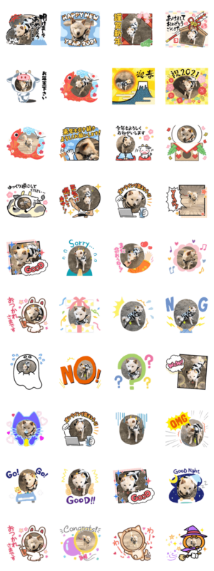 2021年、ミモザちゃんからの挨拶スタンプ。Heva より発売