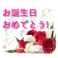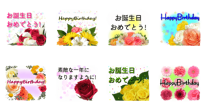 本物の花を添えて送る誕生日用のスタンプです。お誕生日おめでとう・Happy Birthday・素敵な一年になりますように! etc.写真 実写 リアル フラワー flowerHarunire より発売