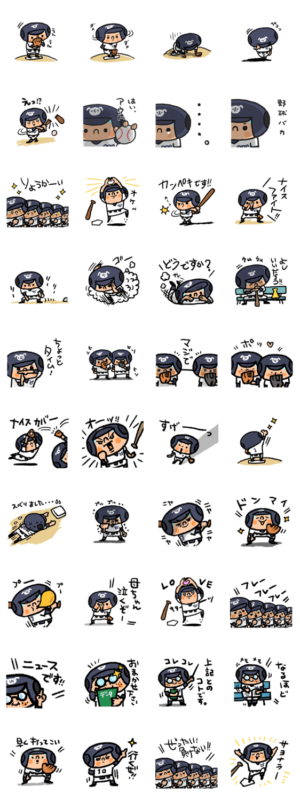 野球大好きスタンプ。プロ選手、クラブチームや草野球、社会人、保護者に使ってほしい、使いやすい応援スタンプ。イラストレーターtunスタンプ第105弾
