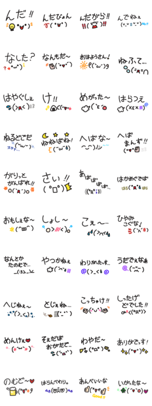 大きめ文字の秋田弁と顔文字のスタンプ スタンプ画像一覧