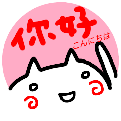 【台湾語】【中国語】【日本語】での挨拶基本セットです。 白目のネコちゃんです。