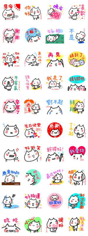 【台湾語】【中国語】挨拶スタンプ ネコ スタンプ画像一覧