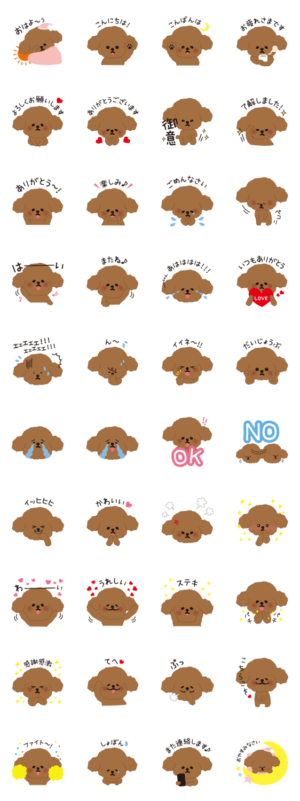 トイプードルのクッキーです。 日常会話で使いやすい言葉入りのスタンプです。happybridge より発売
