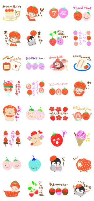 いちごがいっぱい!スタンプのダウンロードはこちら↓