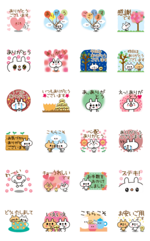 ありがとうと感謝の言葉がイッパイの、動くスタンプ!敬語も入っています。 どういたしましてなどのお返事や、やさしい言葉も入れました。 母の日や父の日にも使ってね♪KAKKOBOX より発売