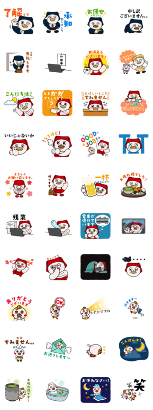 スーパーマーケット「ヤオコー」の公式キャラクター、ヤッポーとコーちゃんのLINEスタンプ第2弾、 楽しいビジネス生活編
