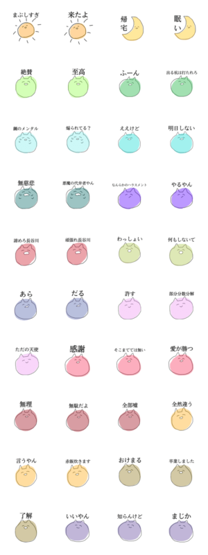 ゆるくて使いやすいスタンプです。猫が長谷川を応援したりカッコいいこと言ったりします。返事は適当にします。ちい より発売
