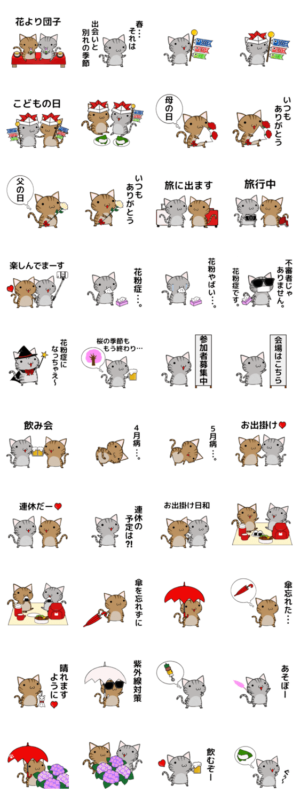 アメショーにゃんこ達の可愛い春のイベント スタンプ情報