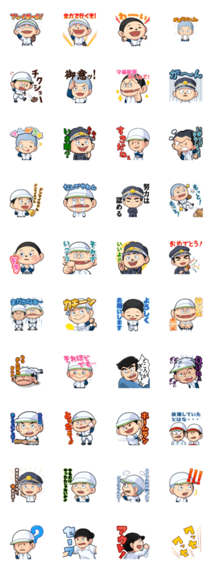 千葉あきお先生による名作野球アニメ「キャプテン」(プレイボール)がかわいいスタンプになって帰ってきた! 谷口・丸井・五十嵐・近藤等、歴代のキャプテンが大集合!