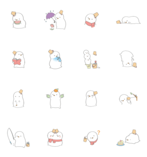 白くてふわふわでもちもちのゆぴまるスタンプ スイカを食べたり本を読んだりする雪だるまちゃんです。ちゃんまる より発売
