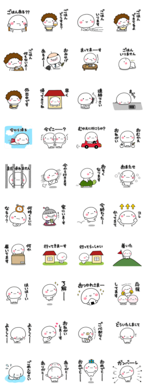 しろくてまるいキャラクター「しろまる」の家族や一緒に住む方に使いやすいスタンプです。無難に使える内容のみ厳選している無難な白キャラです。【作:いしいともこ】