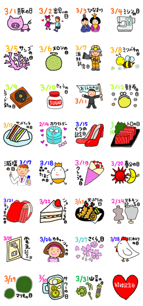 3月カレンダー。ひな祭り、ホワイトデーなどyunyun より発売