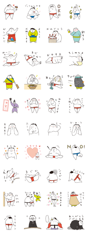 イラストレーターBONNOUMのお相撲さん「ふくまる関」と仲間たちのおとぼけスタンプ。