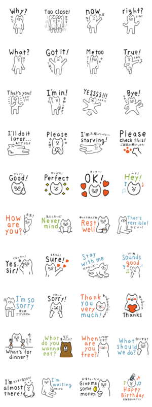 日本語翻訳付きのしろねこトーフの英語スタンプ。英語が分からなくても海外のお友達と楽しくトークすることができます It's the LINE sticker collected simple English.kannoaya より発売