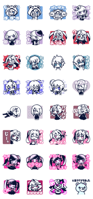 かいりきベア楽曲の公式スタンプです。ダーリンダンスからマネマネサイコトロピックまであります。11曲+おまけ入り。(イラスト : のう)