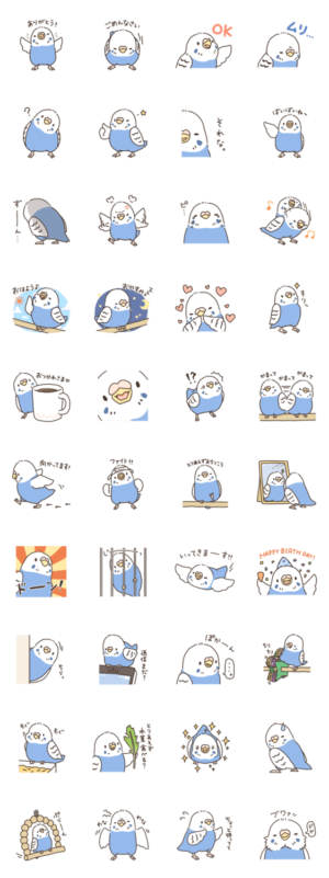 ブルーのセキセイインコ「チャッピー」の色々なイラストが、一言とも合っていてとても可愛いです。インコを飼っている人なら尚更「分かる分かる!」と頷ける表情が沢山あって送るのは勿論ですが、送って欲しいと思えるスタンプです。