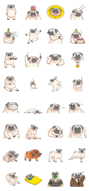 複雑な性格を持ったパグおじさんのジェスチャー集です◎ 非言語コミュニケーションスタンプです◎いきものだもの より発売