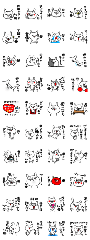 全国の「ママ」専用スタンプ。かわいい「うさぎ」が母親の気持ちを代弁。日常会話で使いやすい。cosotto より発売