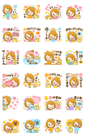 画面いっぱいに可愛く飛び出す♡カラフル可愛い女の子の毎日使えるスタンプです♡ぴよたぬき♡ より発売