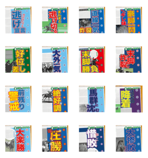 競馬ウェブニュースメディア「競馬のおはなし」が制作する、9文字対応、競馬新聞風の見出しカスタムスタンプ。好きな馬の馬名、気になるあの人の名前を入力して使えます。競馬のおはなし より発売