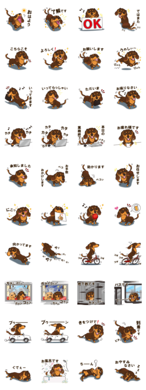 日常会話でよく使う言葉や行動を集めた元気なダックスフンド(チョコタン)のスタンプです。友達や家族の日常会話で気軽に使ってトークを楽しんでください!