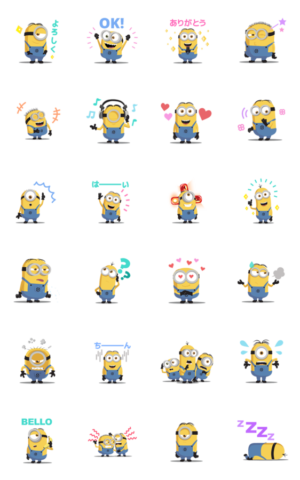 ミニオン大好きです。しかも動くのでそこがまた可愛いです。返信に使える言葉が沢山あるので沢山使いたいと思います。