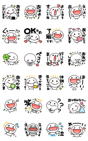 画面いっぱいに飛び出す!!見やすい特大デカ文字と表情豊かな棒人間のシンプルなスタンプです。毎日使える内容です♪