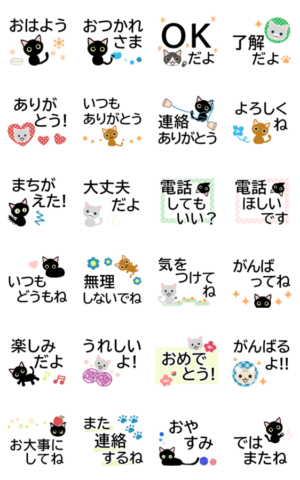 よくある文章と絵柄のスタンプですが、文字が大きく強調されており見やすいです。ワンポイントの猫が可愛いです。