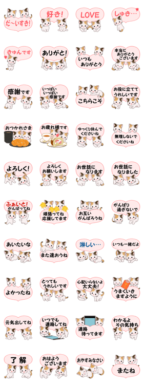 ハート伝える 三毛猫ツインズ スタンプ画像一覧