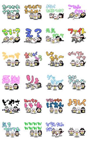 デフォルメされたねこたちの文字入りスタンプです。会話になじむ使いやすいスタンプです。