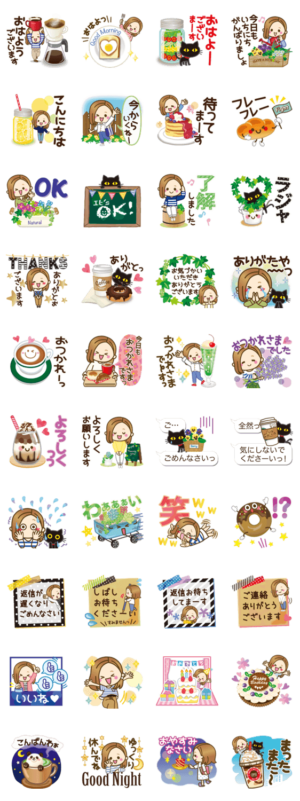 大人が使える第5弾は、カフェやスイーツ、ガーデニングなどのモチーフを多く取り入れてます★敬語や丁寧語も多く、可愛すぎずラフすぎず大人が毎日使いやすいスタンプです