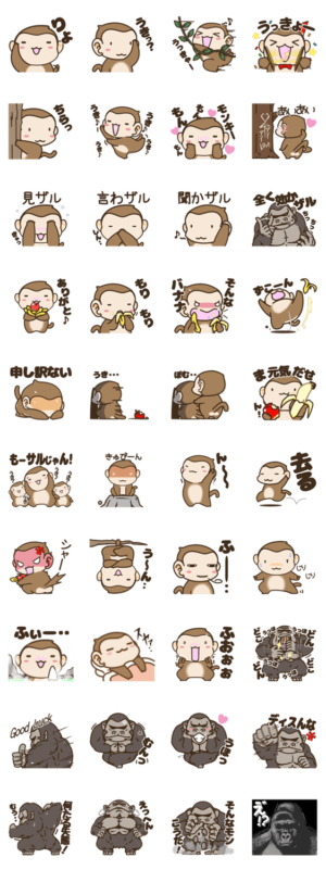 かわいい子ザルとパワフルなゴリラのお茶目なスタンプです。ぽてと より発売