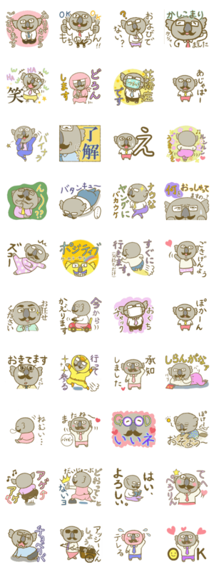 コアラのおじさんのシュールなスタンプです。 少し昭和レトロな雰囲気ですみぽすけ より発売