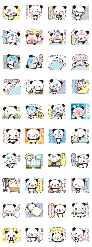 体調が悪いパンダ、ヤムヤムのスタンプです。 具合の悪い人、入院中の人にもお使いいただけます。りこ より発売