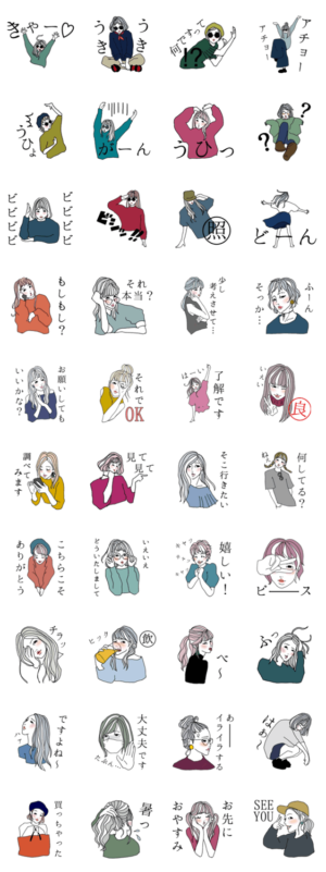 可愛くておしゃれな女の子達のスタンプです。女子高生、女子大生、社会人、主婦の方でも使いやすい日常会話。シュールな表情も◎人気の『女性達』シリーズの第3弾ですNANAE より発売