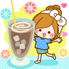 涼しくなる冷たい飲み物やスイーツをほのぼのタッチで手描きしました☆統計でたくさん押して頂いた言葉が多めです☆家族や友達恋人にどうぞ。「ほのぼのカノジョ」シリーズ