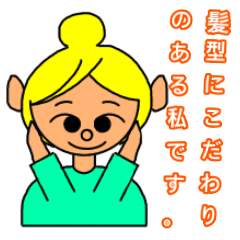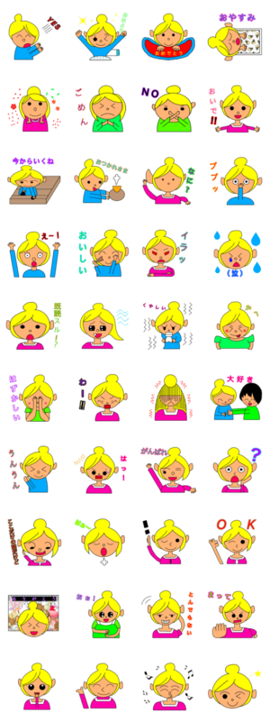 髪型が丸くて、特徴のある女性です! 金髪で外国人の様にして見ました。1個1個のスタンプに服装が変わるのも注目!まさあき より発売