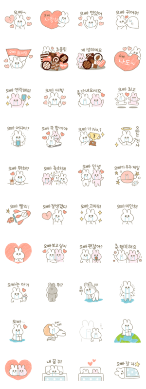 オッパに送るかわいいウサギのスタンプです。K-POP、韓流ファン、ハングルを勉強している方との会話にも!日本語ふりがな付きです。メンヘラ / おっぱ / クレヨン
