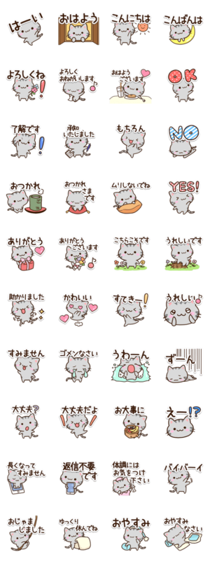 小さいアメリカンショートヘアの、猫スタンプです。可愛く、丁寧に返事をすることができるネコスタンプです。ねこ好きの方、マンチカン等を飼っている方にぜひ。【かたこ】かたこ より発売