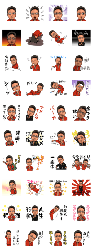 日常会話には持って来いな令和の流行りを取り入れた顔だけ文字入り敬語の混ざったイチオシスタンプ!負けない気持ちお兄さんがダル着と特攻服で2キャラ登場!使う間違いなし!