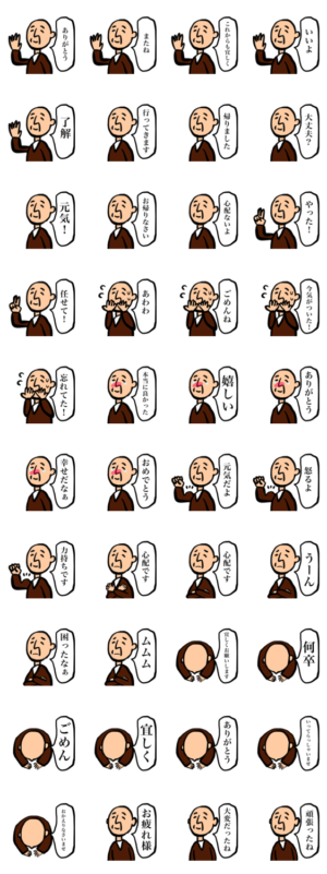 おじいちゃんがよく使うスタンプ第4弾です。じいじ おじいちゃん じいちゃん おじいさん おじさん お父さん お坊さん スキンヘッド 日常 普段使い 日常会話