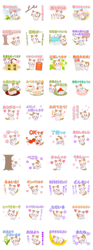 優しい春 もふもふしっぽの子猫ちゃん スタンプ画像一覧