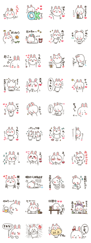 ちょっぴりブリッコで女子力高いうさぎちゃんスタンプ。無駄にハート多めなので彼氏に送るにもぴったり!花粉症や仕事がんばる女子にもおすすめ。